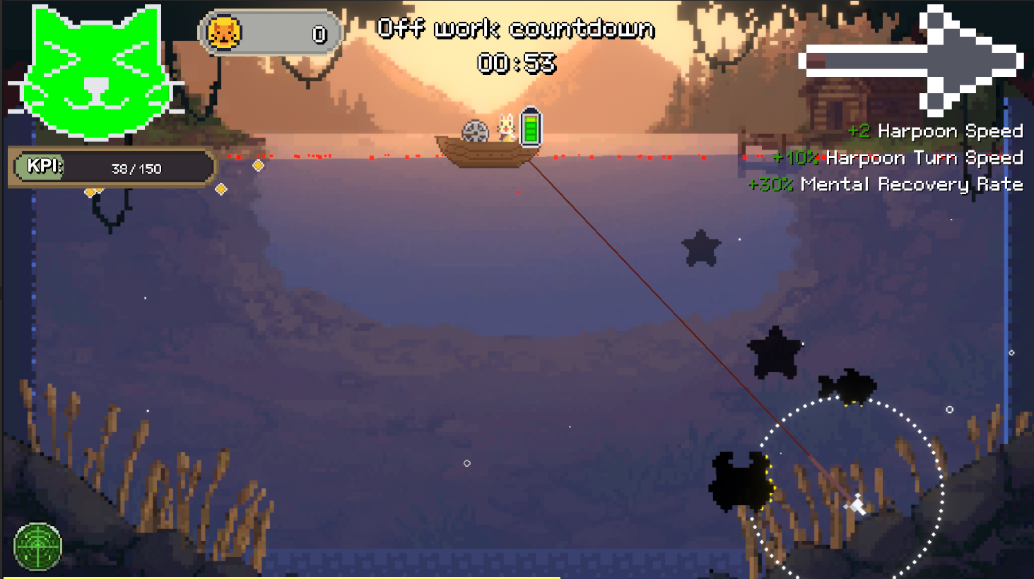 Use your radar to detect the fish, predict their trajectory, and strike with precision. The game features upgrades, a combo system, relics, a shop, and even 3 beautiful unlockable illustrations!